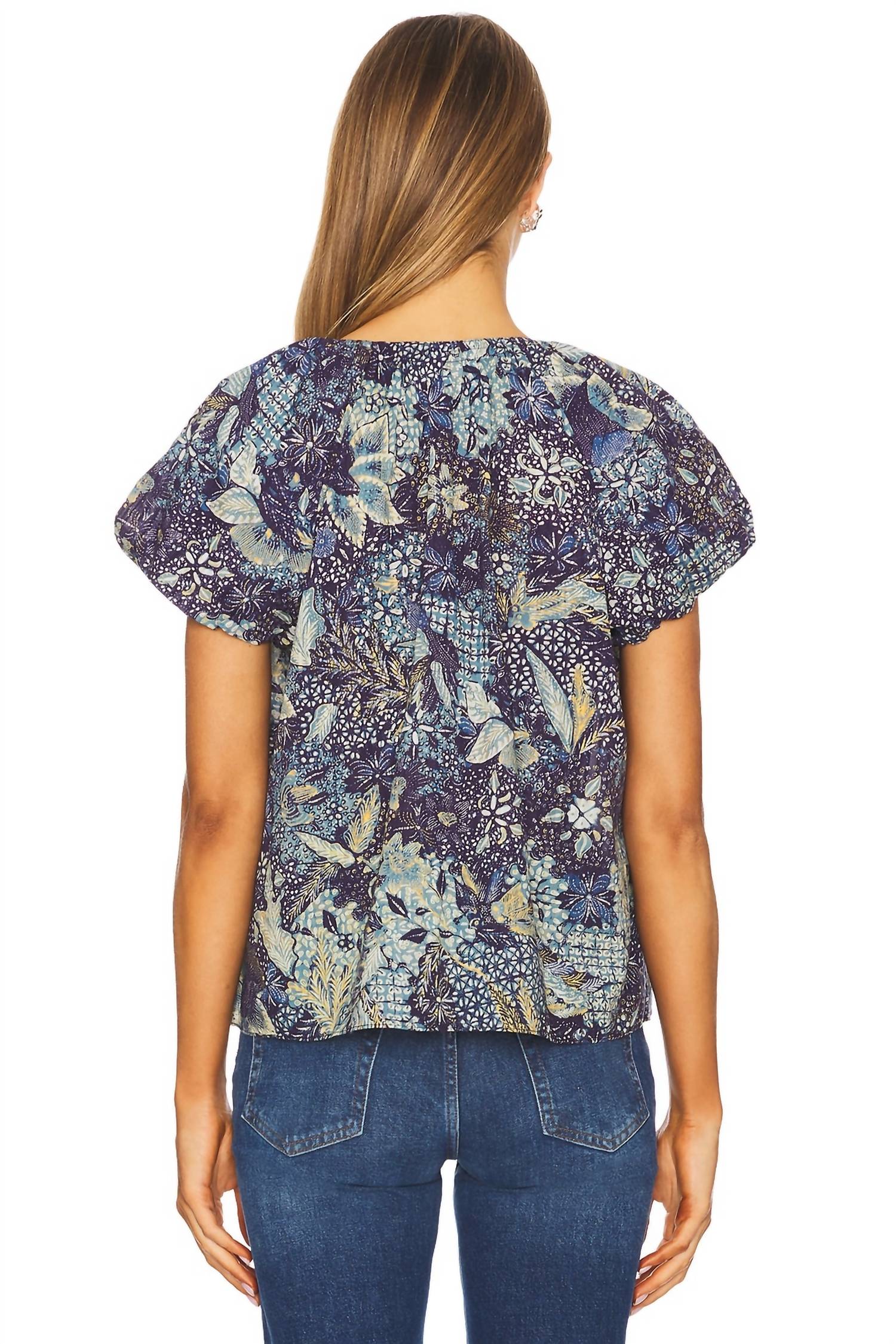 Presenting the Issa Short Sleeve Top by Ulla Johnson, a vibrant addition to any wardrobe with its stunning Portofino floral print in greens and blues. Crafted from a light cotton blend with 66% cotton and 34% viscose, this top features a short sleeve design and a comfortable pull-on closure. Originating from India, it offers effortless chic for spring engagements. Care for it with a gentle hand wash in cold water to maintain its elegance.