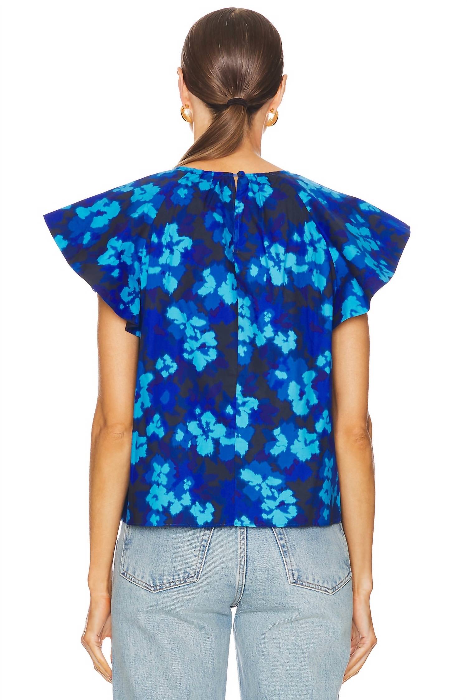 A versatile blouse that works from desk to dinner! Embrace boho chic with the Rumi Floral Top by Ulla Johnson, a captivating blouse in azure adorned with vibrant blurred ikat florals. This women's top is crafted from 100% cotton, featuring cap flutter sleeves and a gathered crewneck for a flowy fit. Closure: Pull on. Perfect for a spring vacation wardrobe refresh.