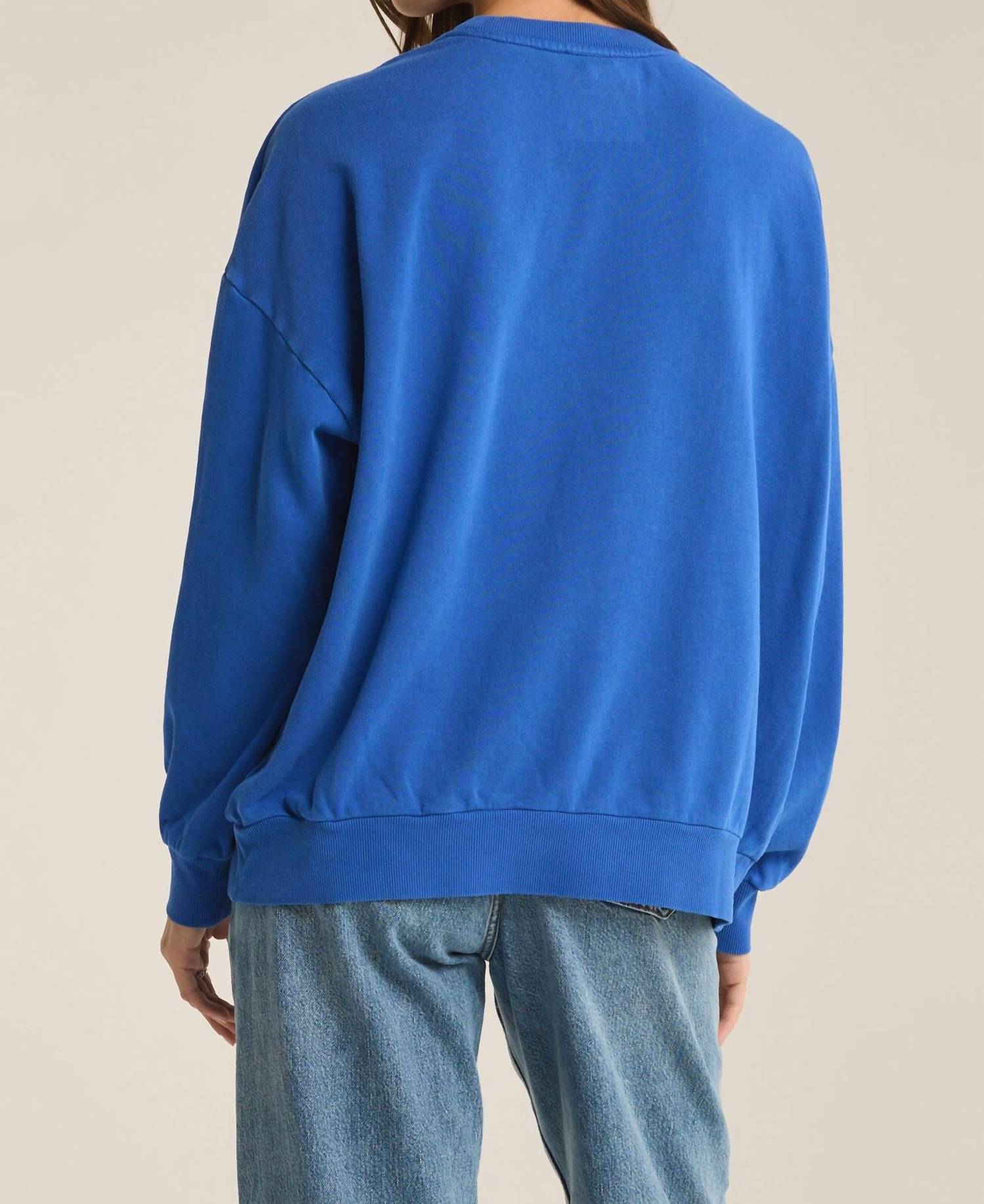 Cooler temps call for layering and we love this adorable sweatshirt for all the obvious reasons. Embrace effortless style with the Z Supply Apres Sweatshirt in a striking Palace Blue hue. This top features a crew neck and long sleeves, perfect for a cozy, oversized fit. The sweatshirt boasts a vintage wash for that timeless, well-loved look.