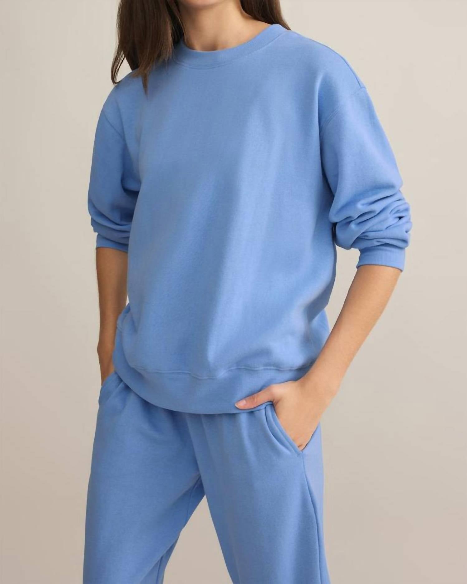 Introducing the Classic Boyfriend Sweatshirt by Z Supply, a minimalist piece perfect for laid-back days. This Blue River sweatshirt features long sleeves and a classic crew neck, crafted from a comfortable midweight CVC fleece composed of 60% cotton and 40% polyester. The pull-on closure and heavy soft wash treatment make it ultra-soft, ideal for cozy holiday parties or Thanksgiving gatherings. Care is simple with machine washing and tumble drying recommended.