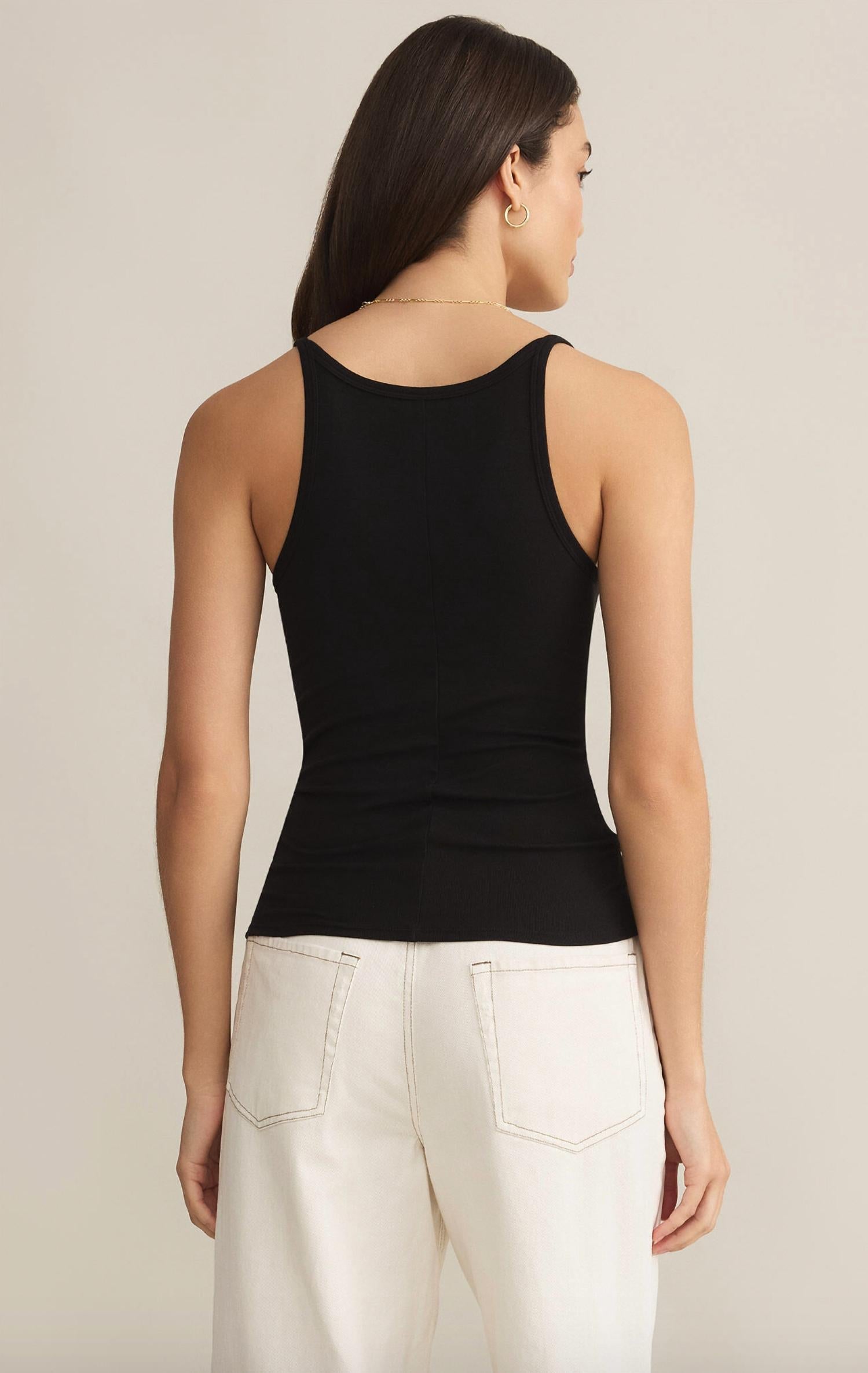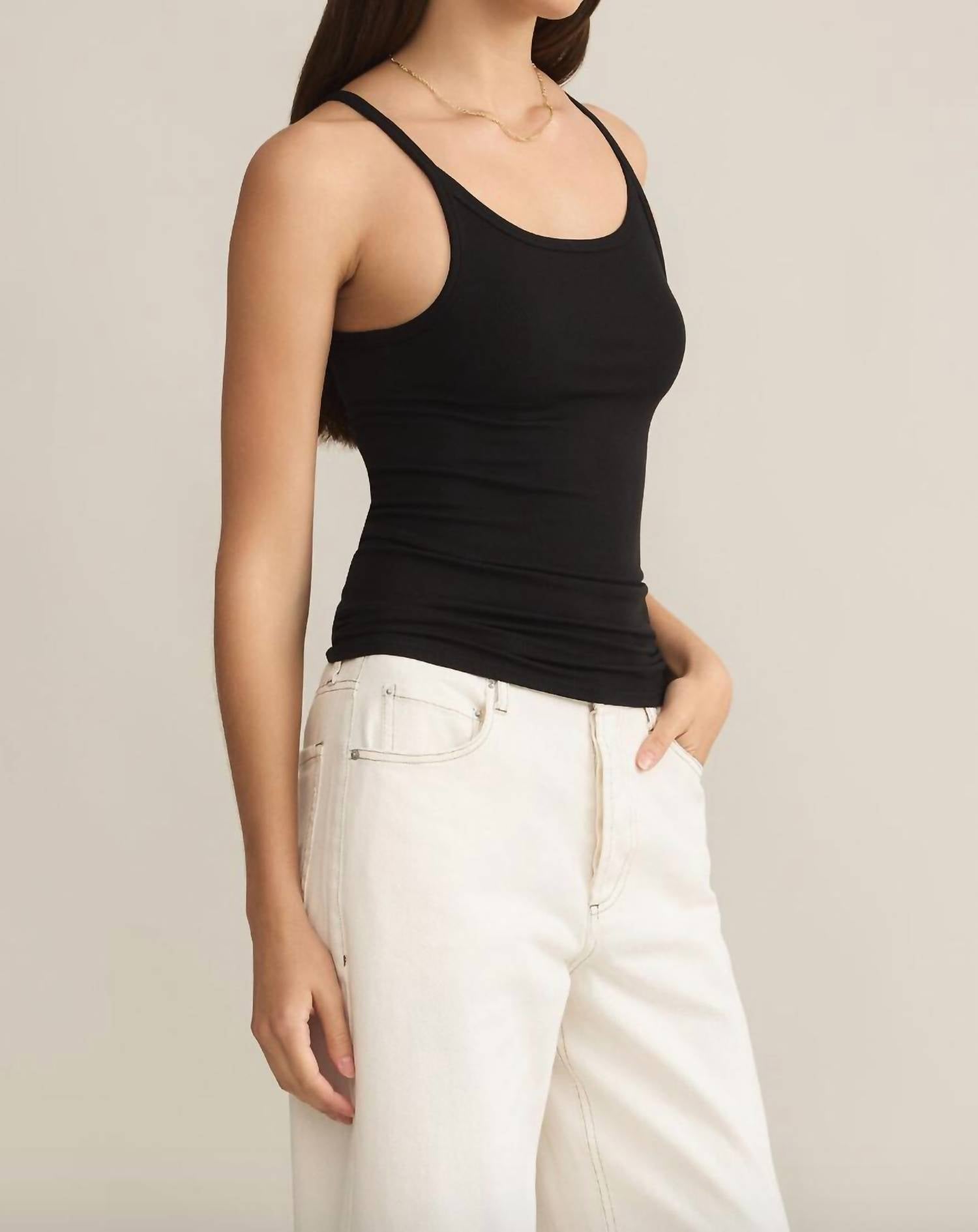 The perfect tank top for those warmer weather seasons. Meet the Z Supply Second Skin Racer Tank, a minimalist essential perfect for summer vacations. This fitted, scoop neck tank features spaghetti straps and is crafted from a midweight blend of 92% rayon and 8% spandex, offering a second skin feel. Enjoy the sleek, solid black design with a heavy soft wash for added comfort. With a pull-on closure, it is easy to wear, and care is a breeze with machine wash and lay flat to dry instructions.