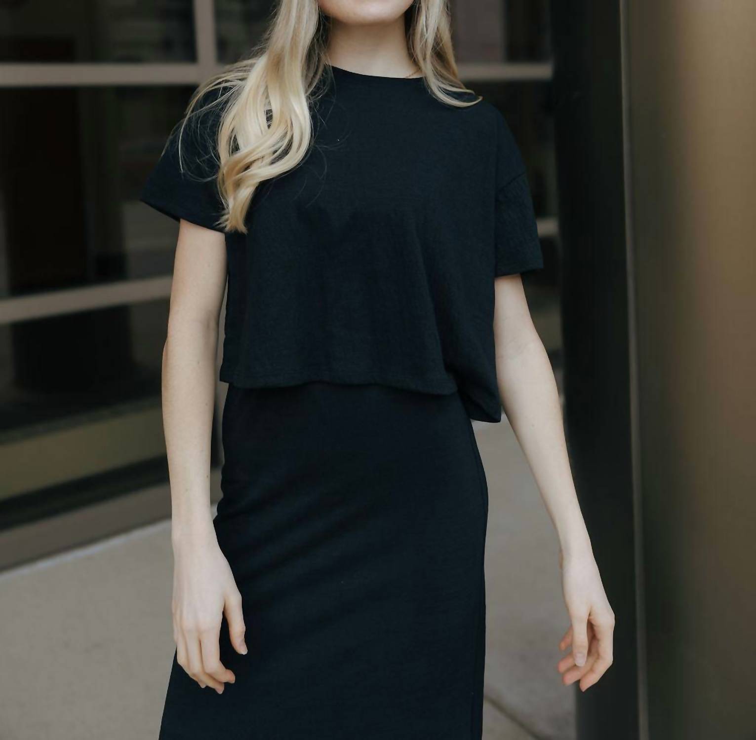 Introducing the Sway Textured Cropped Short Sleeve Tee by Z Supply, a must-have for effortless style in classic black. This tee features a crewneck design with short sleeves, crafted from a soft blend of 65% polyester, 34% cotton, and 1% spandex. Designed for a true-to-size fit, the garment length from shoulder measures 18 7/8" (XS) to 20 3/8" (L), and the bust ranges from 41 1/2" (XS) to 48" (L). Closure is a pull-on style and care is simple with machine wash and tumble dry instructions.