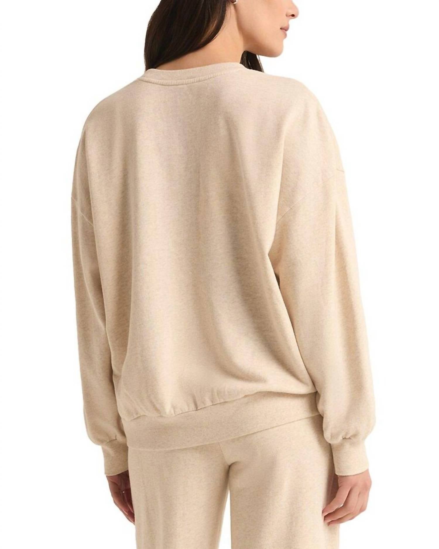 Cozy fabric, impeccable design - Meet the sweatshirt that you'll never want to take off. Introducing the Wellness Sunday Sweatshirt by Z Supply, a perfect addition to your loungewear collection designed for cozy Sundays. This long sleeve, pull-on sweatshirt is crafted from 100% cotton in a light oatmeal heather hue. The graphic pattern adds a stylish touch to your travel or self-care days. Care is effortless with machine wash instructions.