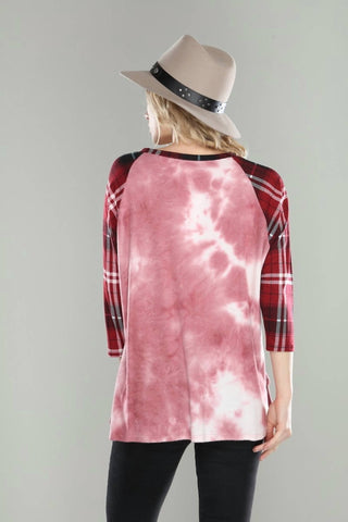 Crepas - Plaid Sleeve Fleece Jersey Tee