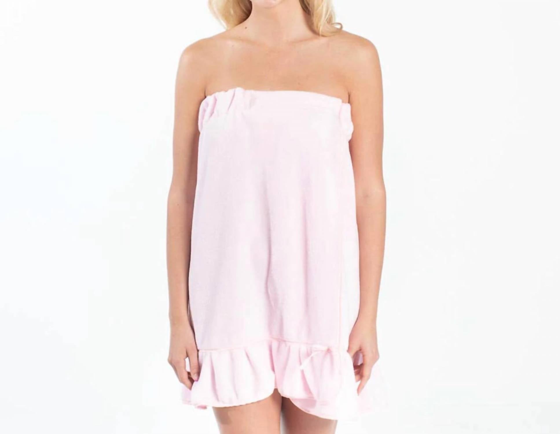 When comfort and style come together seamlessly. Indulge in blissful comfort with the Women's Ruffle Spa Wrap by Bella il Fiore, crafted from 100% polyester for an ultra-soft touch. This strapless wrap, featuring a sweet ruffle detail and a neat squareneck, is perfect for post-shower relaxation. It ensures a secure fit with a soft elastic band across the back and a convenient Velcro closure in front. Designed in a solid, minimalist style, this summer essential is machine washable and tumble dry-friendly for effortless care. The wrap comes in a versatile one-size fit for US sizes 0-10, with a length of 27 inches, accommodating a chest size of 32"-42" and waist of 25"-35". Available in pink, among other chic colors.
