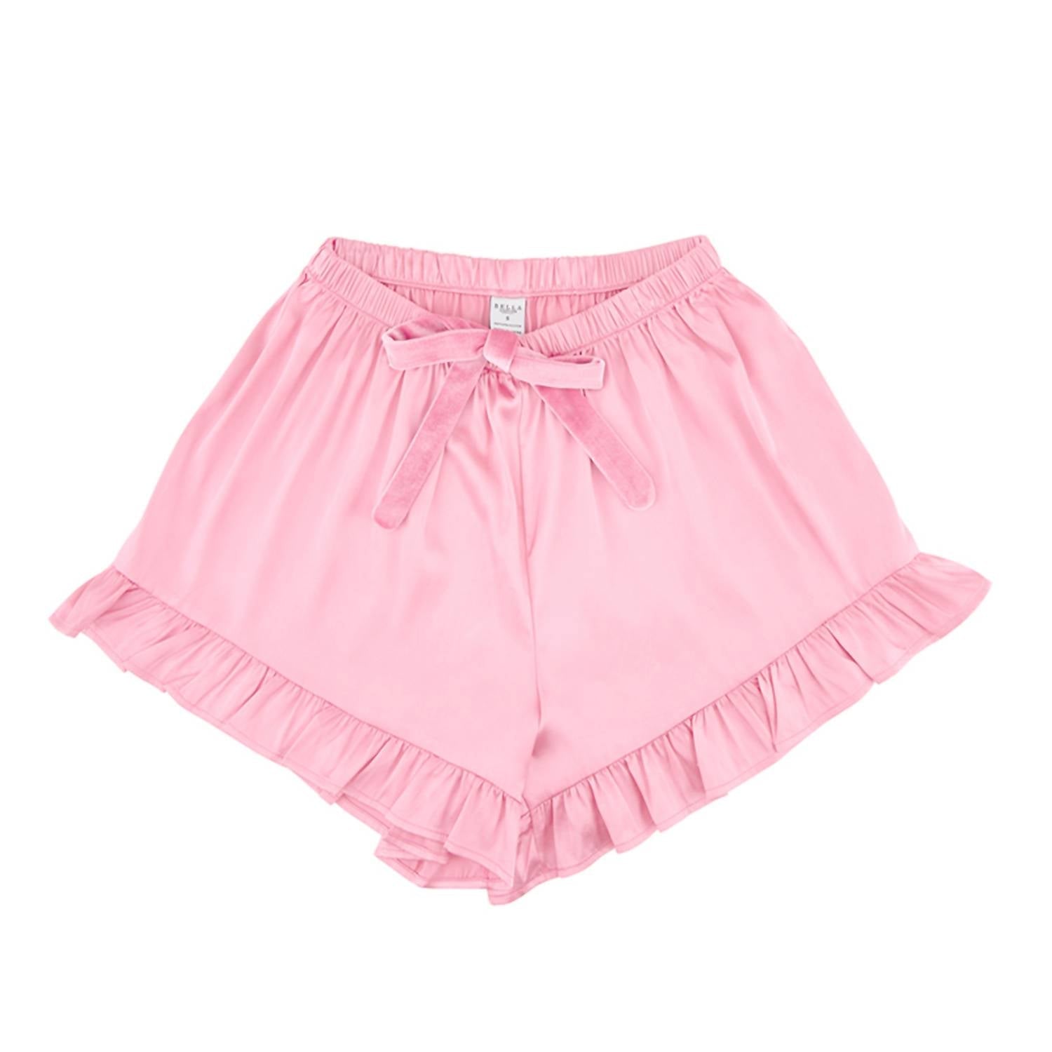 Works well with naps, zoom calls and binging your favorite series. Indulge in elegance with the Cami And Velvet Ruffled Short Set by Bella Sleep + Spa, perfect for relaxed evenings or festive gatherings. These pajamas, crafted with spaghetti straps and luxurious satin, feature a scoop neckline and refined velvet ties on the waistband. Designed in a solid pink, this minimalist set seamlessly aligns with spring trends. Easy to care for, simply machine wash and lay flat to dry.