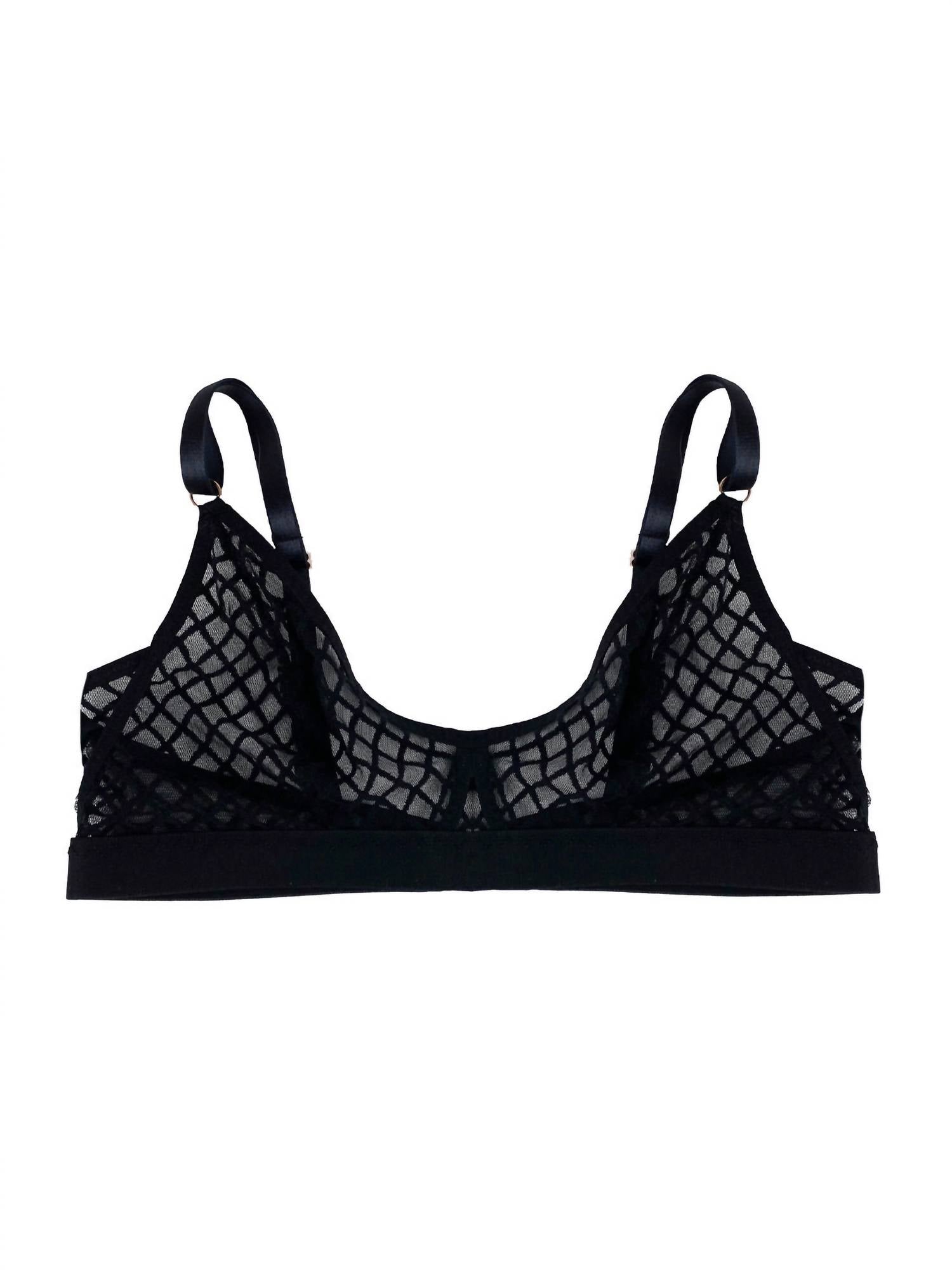 Both pretty and functional. Need we say more? The Women's Julien Bralette by TITOV is a stylish choice, handcrafted with black geometric knit fabric and solid elastic for a textured, minimalist look. Featuring a scoop neck design, this slightly see-through bralette is crafted with 50% polyester and 50% nylon mesh for a sultry yet comfortable fit. It comes equipped with adjustable straps complete with delicate rose gold hardware, ensuring all-day comfort whether you're out for Valentine's Day, an anniversary, or any special occasion. Proudly made in the USA, this elegant piece is best cared for by hand washing and line drying.