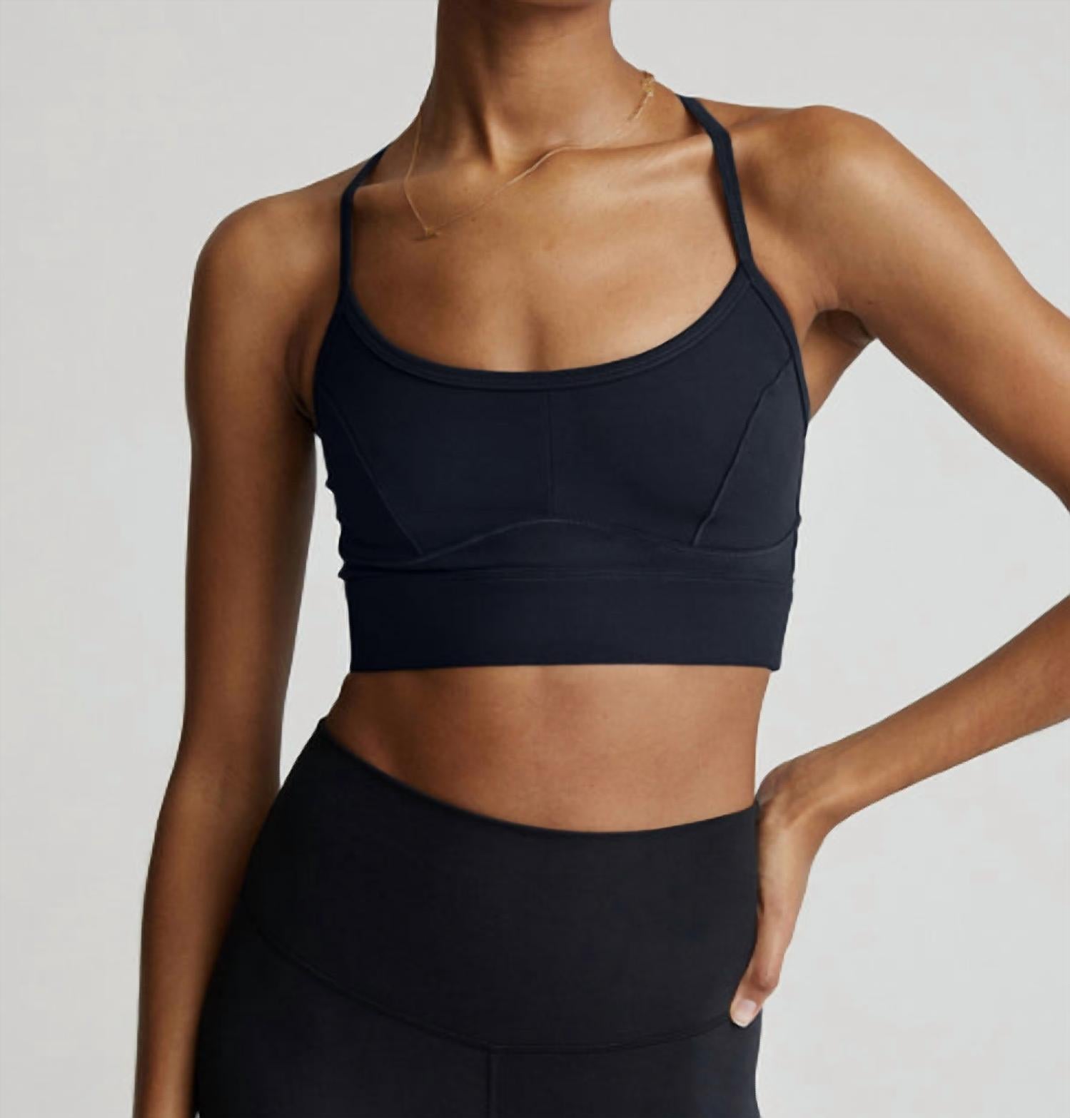 A sports bra that has it all - style, function and support. Designed to move seamlessly with your body, the Irena is a light support bralette with a scoop neck, shaped bust and spaghetti straps that cross at the back. 75% Recycled Polyester, 25% Elastane. Machine wash cool with like colors, do not bleach.