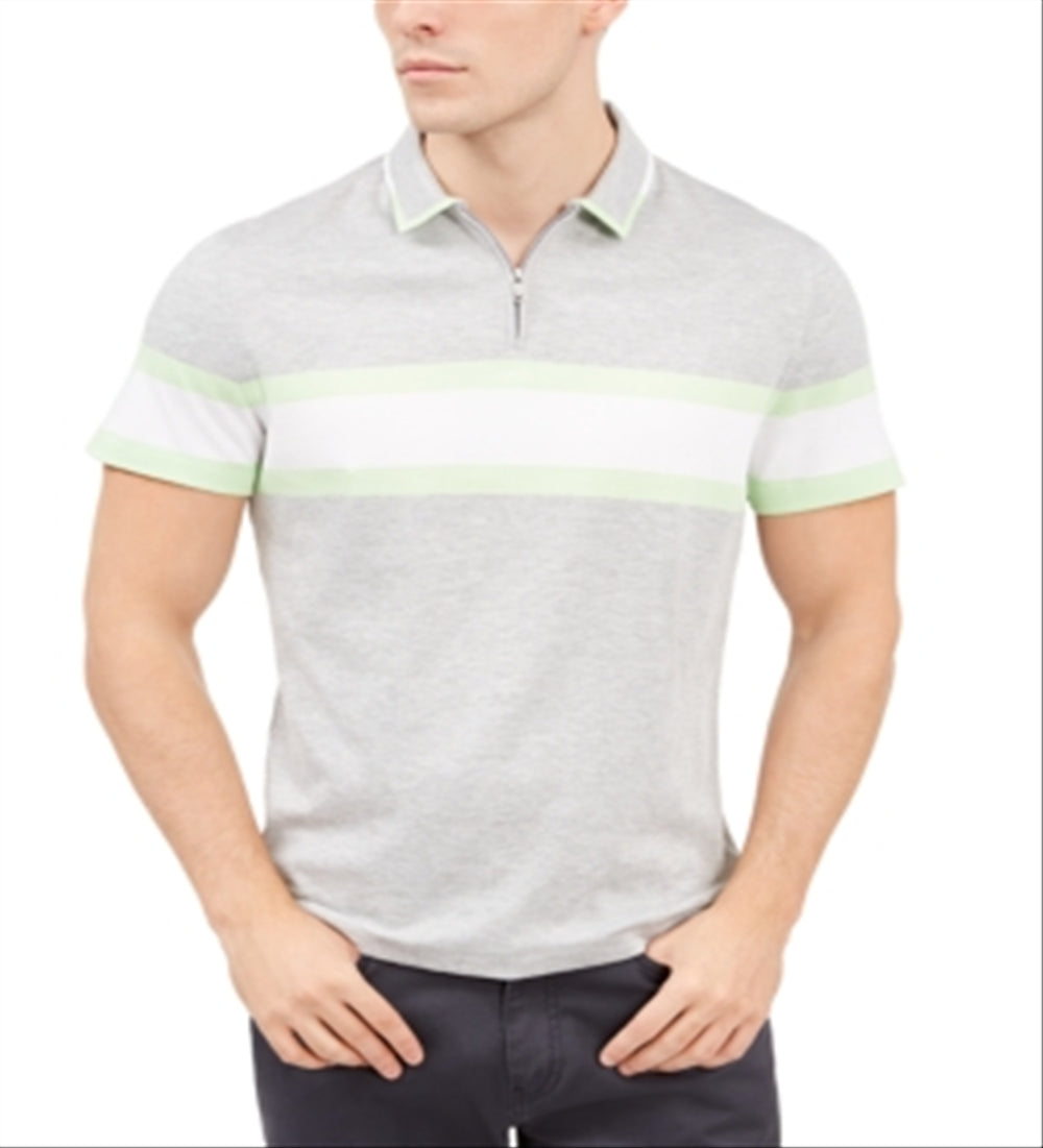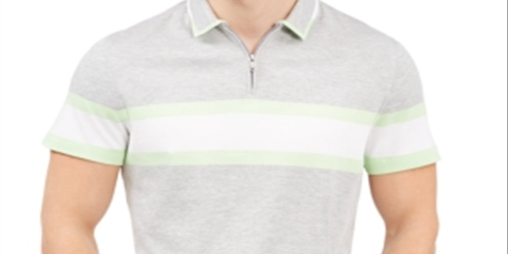 Alfani Men's Regular Fit Stripe Quarter Zip Polo Shirt Grey Size XXX-Large
