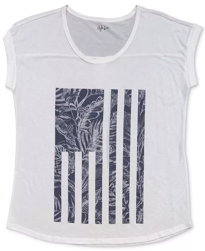 Style & Co Women's Tropical Flag Graphic T-Shirt Navy Size Large