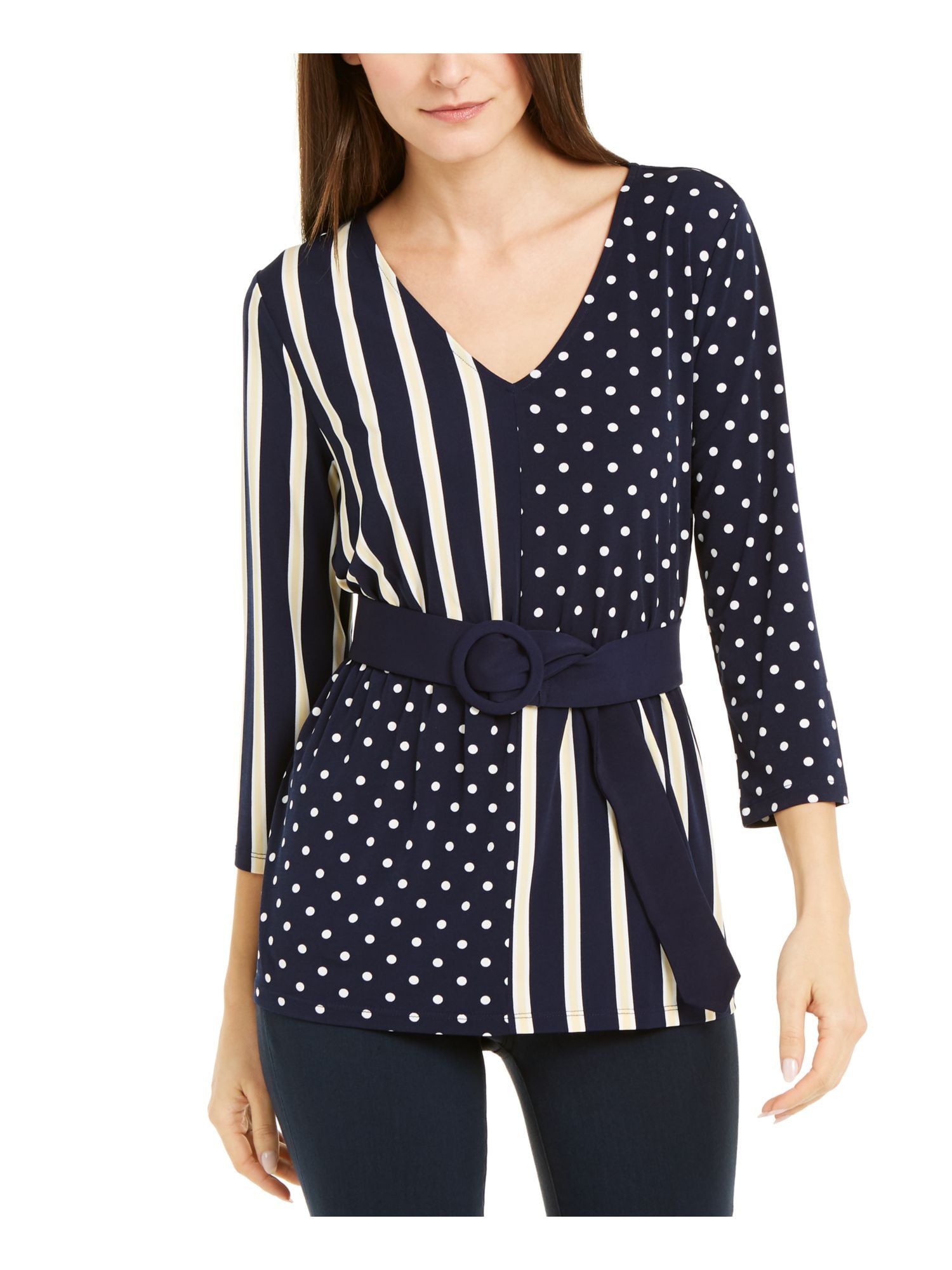 Alfani Women's Tie Polka Dot 3/4 Sleeve Blouse Party Top Blue Size Petite Small