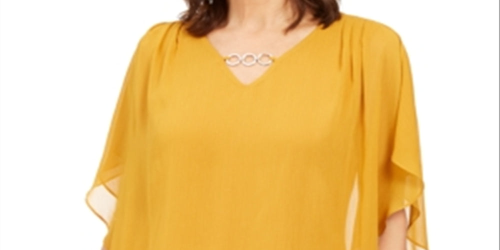 JM Collection Women's Asymmetrical Chiffon Top Yellow Size Small