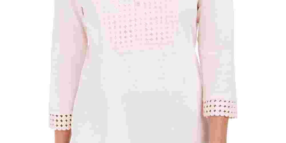 Karen Scott Women's Crochet-Trim Henley Top Pink Size Large