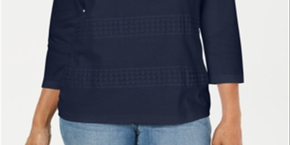Karen Scott Women's Lace Square Neck 3/4 Sleeve Top Blue Size Petite Small