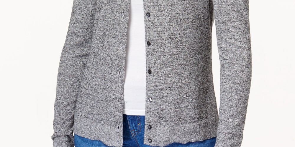 Karen Scott Women's Marled Cardigan Gray Size Petite X-Large