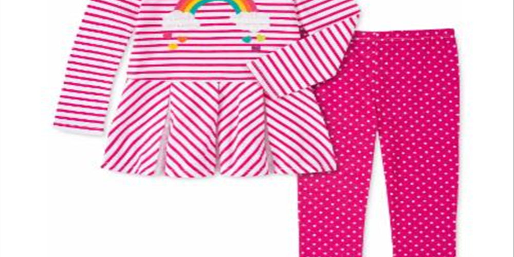 Kids Headquarters Toddler Girl's 2 Pc Rainbow Tunic & Polka Dot Leggings Set Pink Size 2T