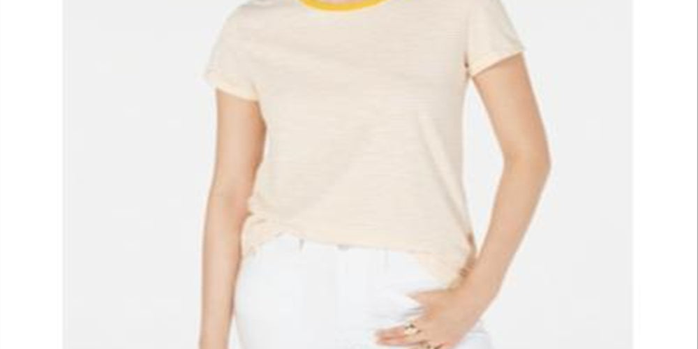 Maison Jules Women's Crewneck Ringer T-Shirt Yellow Size X-Small