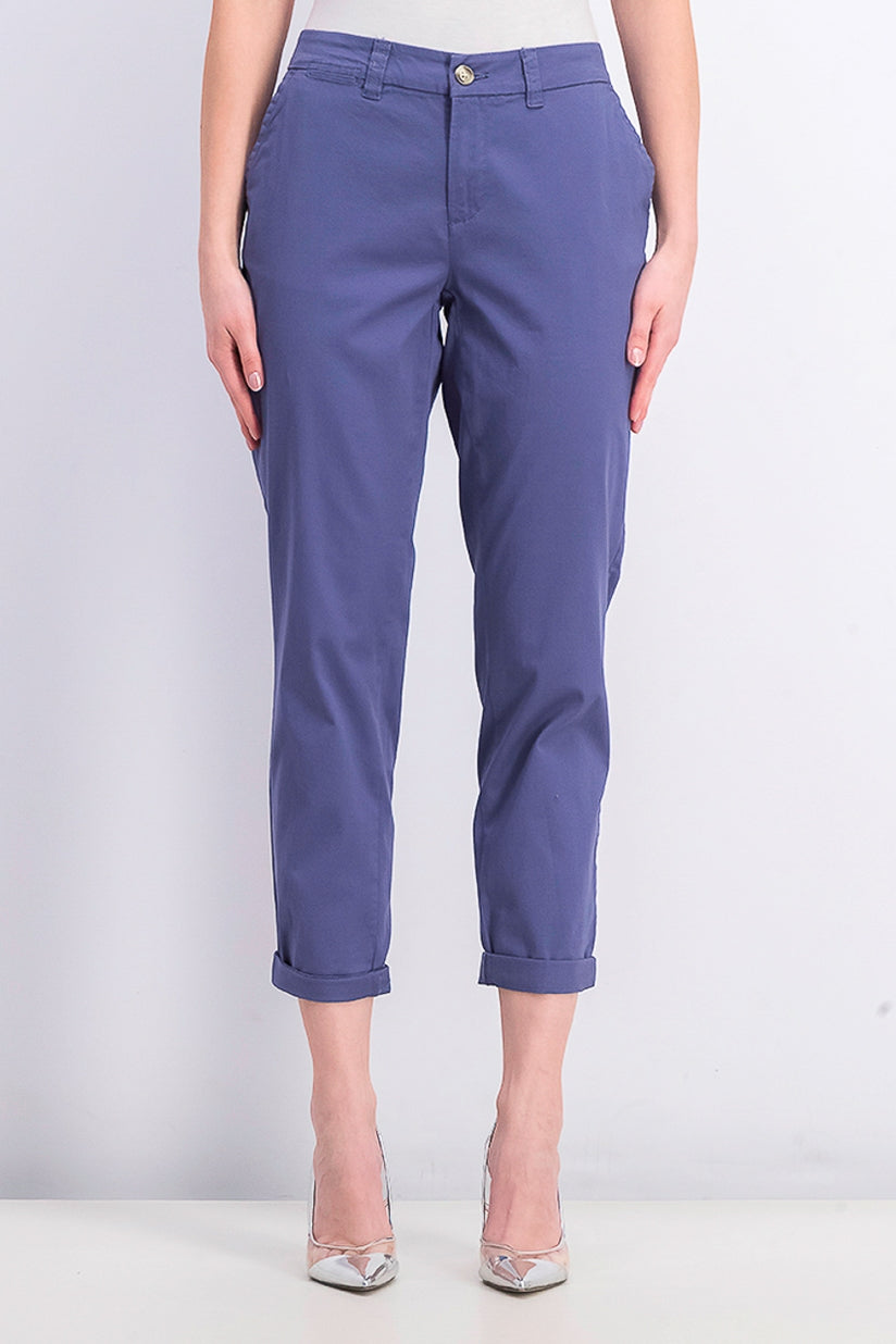 Approx. inseam: 26"|Mid rise; slim fit through hips and thighs; slim leg|Off-seam pockets; welt pockets at back|Front zipper and button closure; belt loops|Cotton/spandex|Machine washable