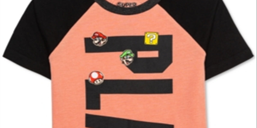 Give any gamer a fun look perfect for play with the fun Super Mario Bros. characters featured on this comfortable T-shirt from Nintendo. | Crewneck| Graphic print at front; contrast raglan sleeves| Cotton/polyester| Machine washable| Imported
