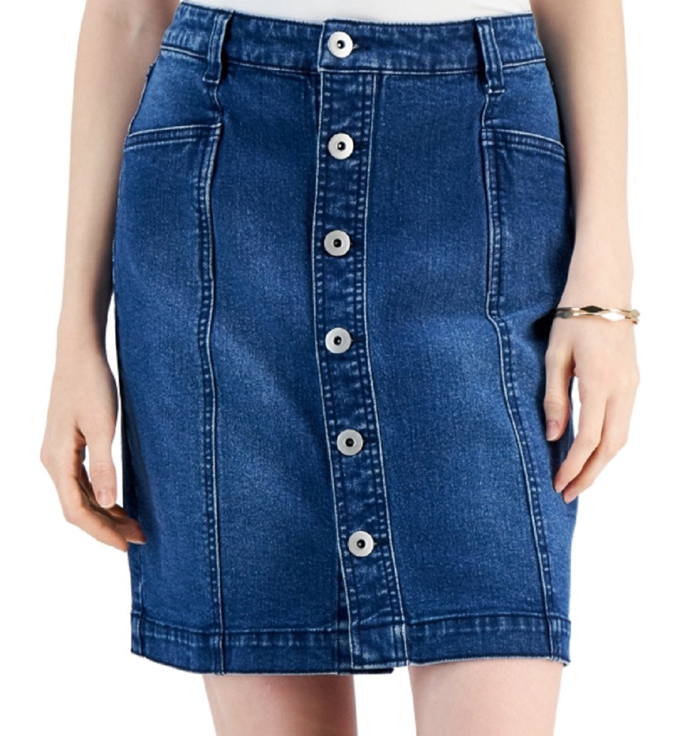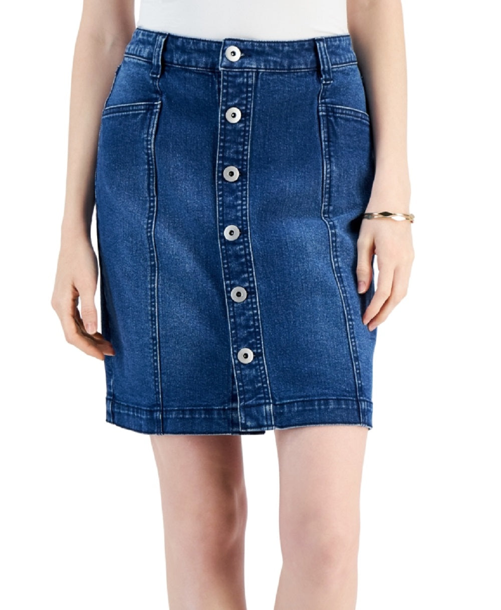 A button-down front lends classic denim style to this relaxed skirt from Style & Co| designed with plenty of handy pockets|