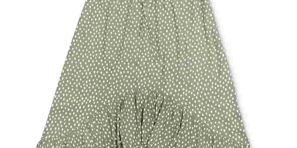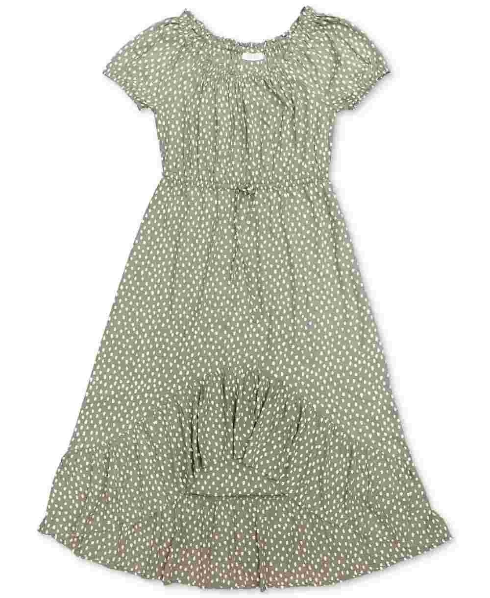 Approx. 48" long|Due to generous sizing, we suggest sizing down for the perfect fit|Elasticized scoop neckline|Pullover styling; drawstring waistband|High-low ruffled hem|Unlined