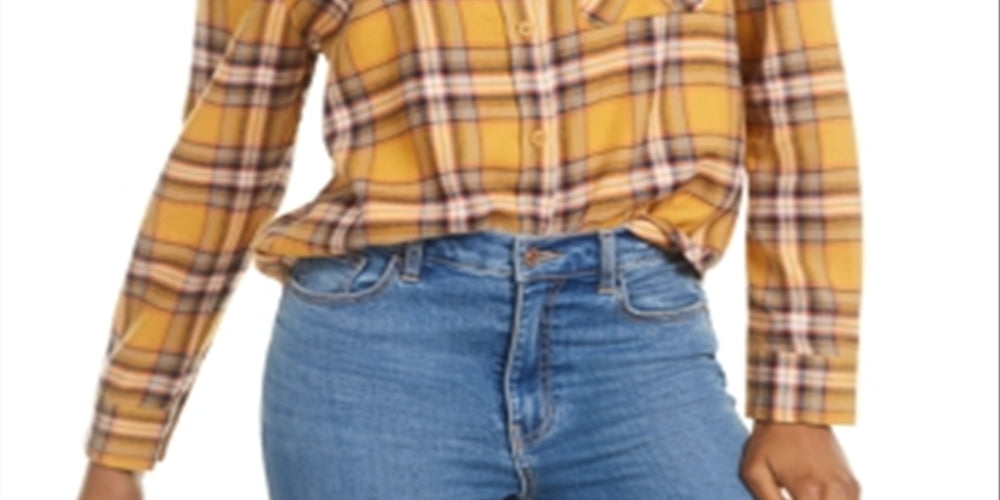 Ultra Flirt Junior's Plaid Flannel Shirt Orange Size Small