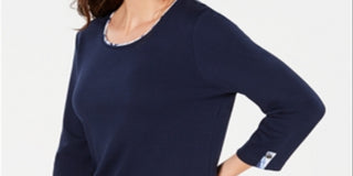 Karen Scott Women's Printed Trim Top Blue Size Petite S