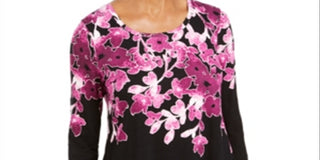 JM Collection Women's Printed Scoop Neck Top Purple Size Small