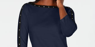 Karen Scott Women's Petite Cotton Studded Boat-Neck Top Navy Size PS