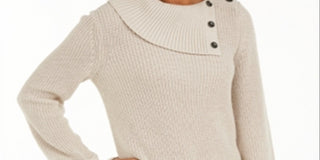Style & Co Women's Envelope Neck Scalloped Edge Sweater Beige Size Petite S