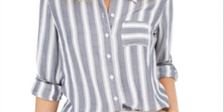 Style & Co Petite Striped Roll-Tab Blouse Blue Size Petite S
