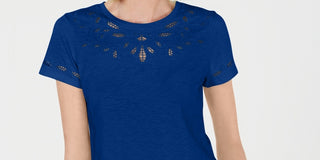 Charter Club Women's Cutout Cotton T-Shirt Blue Size Small