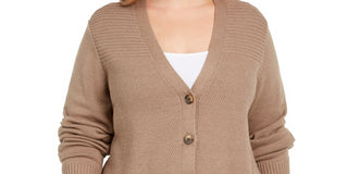 Karen Scott Women's Plus Size Ribbed Knit Cardigan Sweater Brown -0X