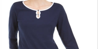 Karen Scott Women's Contrast Trim Cotton Top Blue Size Medium
