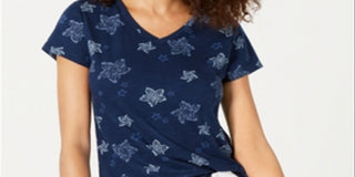 Style & Co Women's Printed V Neck T-Shirt Blue Size -Petite L