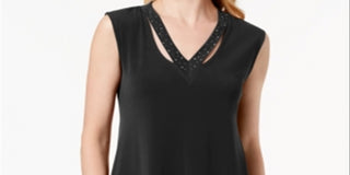 JM Collection Women's Embellished Cutout Tank Top Black Size Small