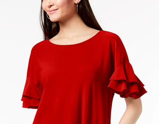 INC International Concepts Women's Petite Ruffled-Sleeve Top Dark Red Size Medium