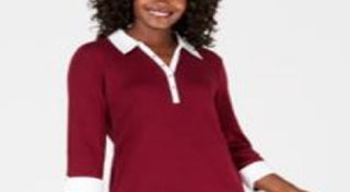 Karen Scott Women's Contrast Trim Cotton Shirtdress Red Size Petite L