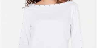 Karen Scott Women's Studded Boat Neck Cotton Top White Size Petite XL