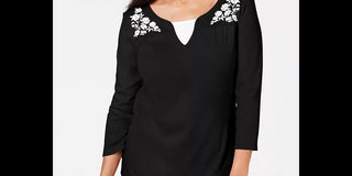 Karen Scott Women's Embroidered Cotton Layered Look Top Chestnut Size Petite L
