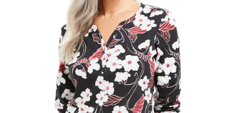 Karen Scott Women's Glitter Vines Henley Top Red Size Large
