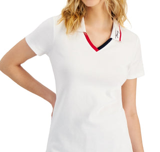 Tommy Hilfiger Women's Cotton Contrast Trim Polo Top White Size Large