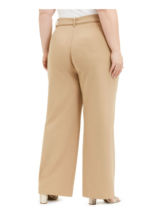 INC International Concepts Women's Utility Pocket Belted Casual Wide Leg Pants Beige Size 14W