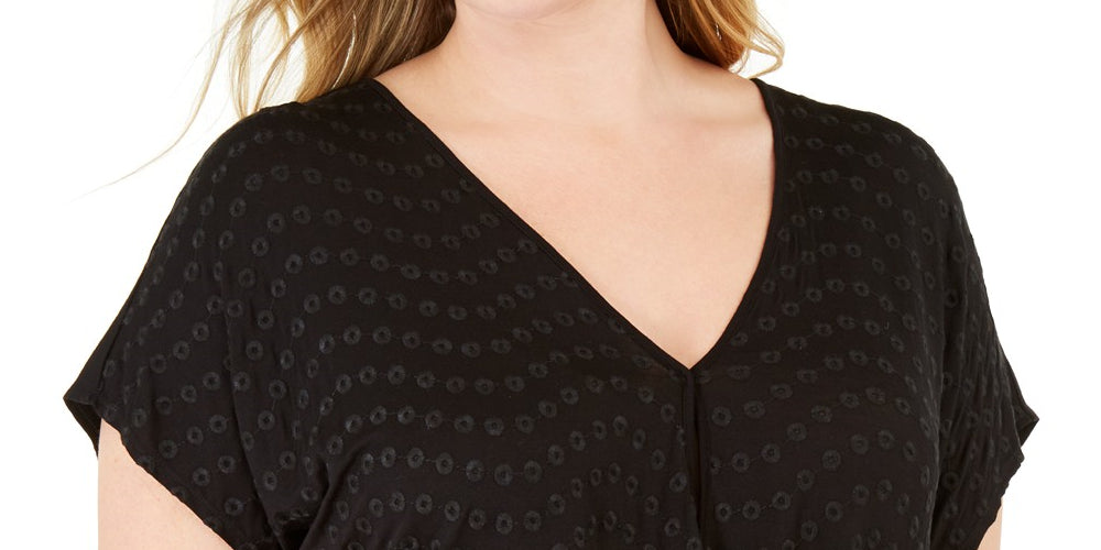 INC International Concepts Women's Eyelet Twist Front Top Black Size 1X