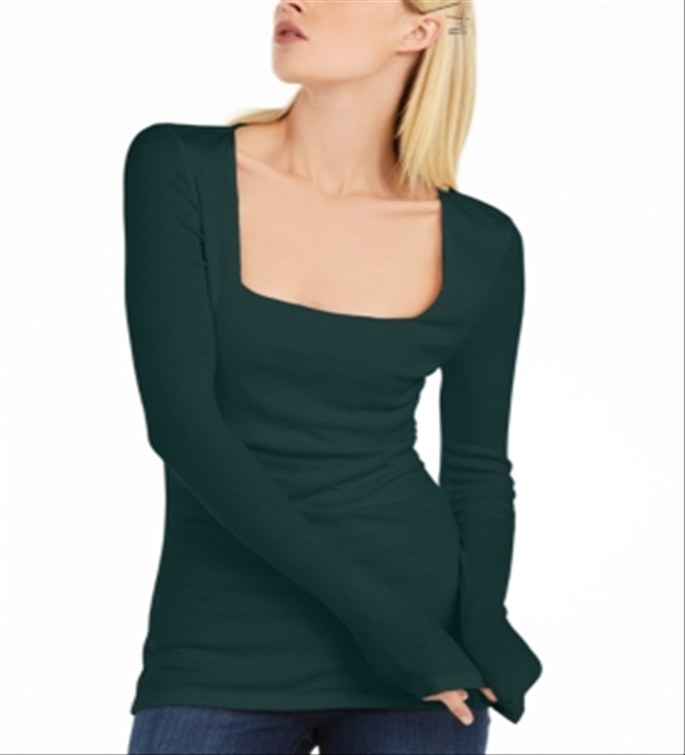 INC International Concepts Women's Square Neck Ribbed Top Green Size Large