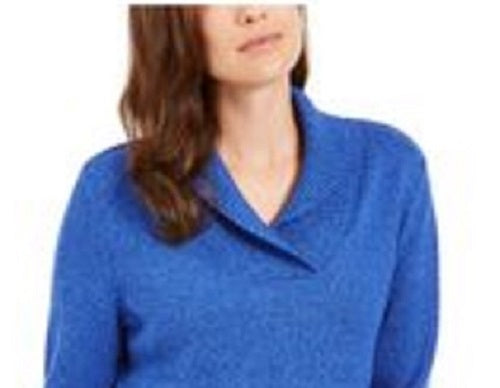 Karen Scott Women's Plus Size Marled Cotton Shawl-Collar Sweater Blue Size 2X