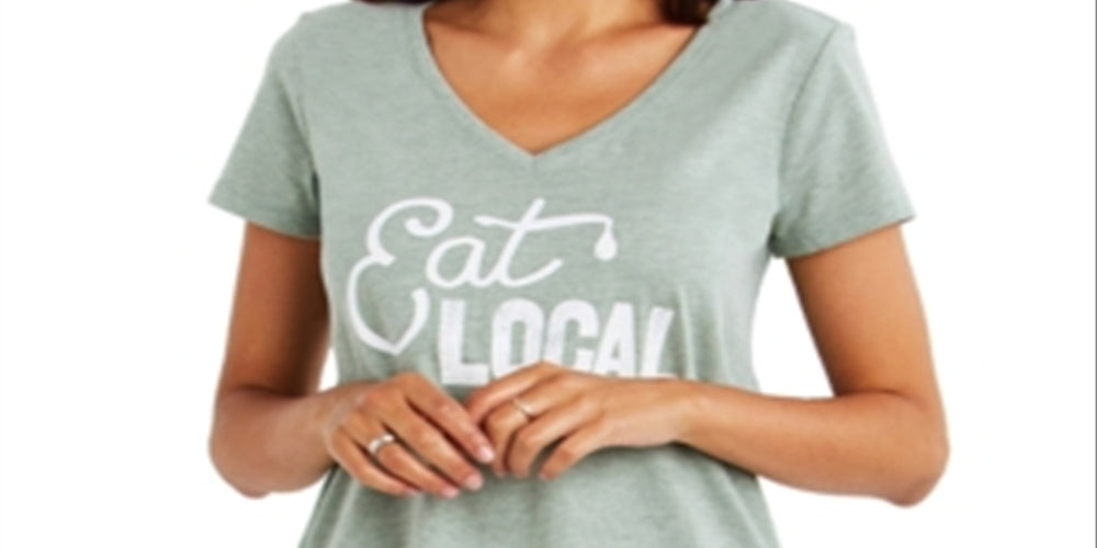 With a side-zip double-opening for nursing| this top by Motherhood Maternity is a must-have for new moms.| Imported| Eat Local graphic at front| Pullover style; side-zip opening| Maternity top| Scoop neckline