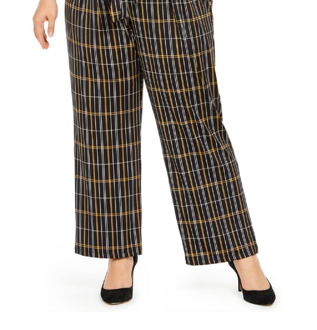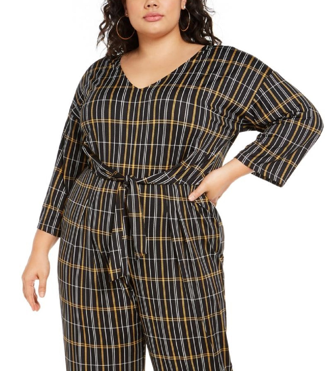 NY Collection Women's Plus Jumpsuit Tie Front V Neck Black Size 1X
