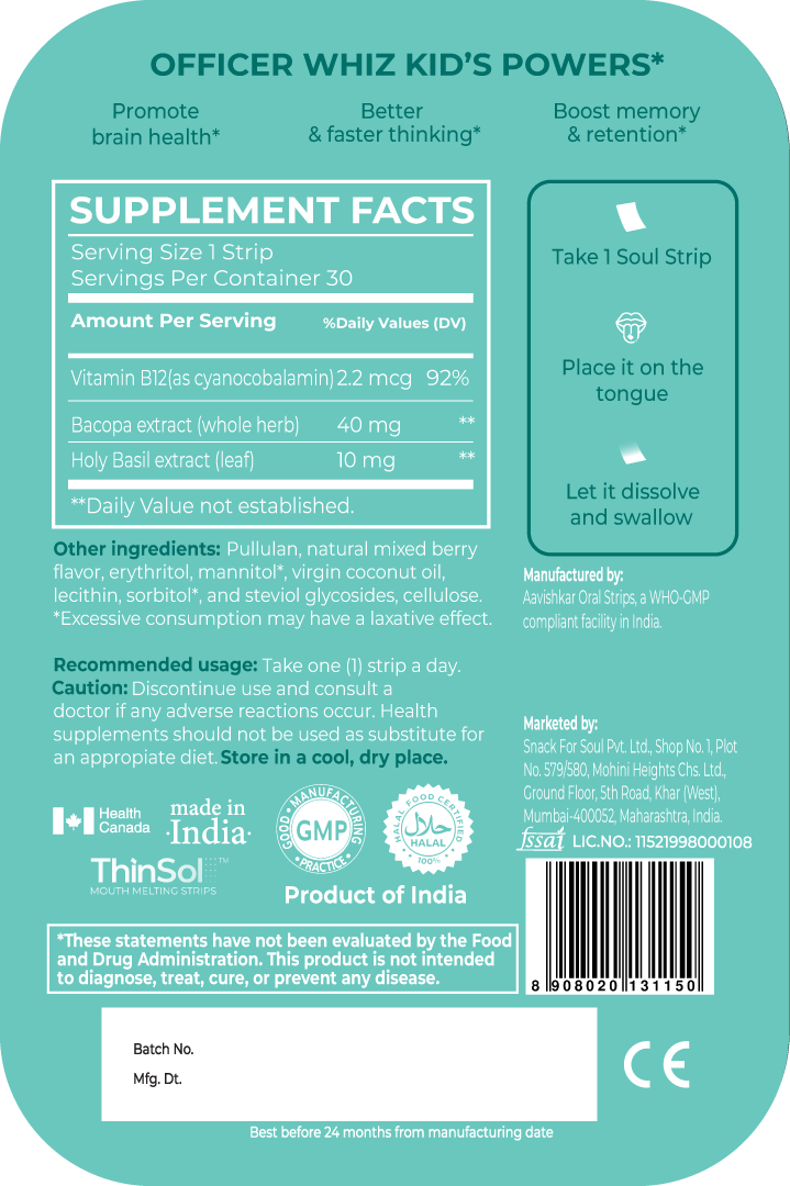 Soul Strips Kids Officer Whiz Kid Vegan Sugar Free Mixed Berry Flavor 30 Strips