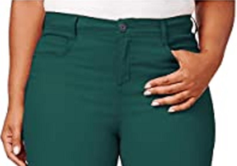 Button front closure with zip fly; belt loops|Five-pocket styling|Imported|Tummy-control panel